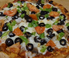 Mushrooms, Black Olives, Green Peppers, Onions